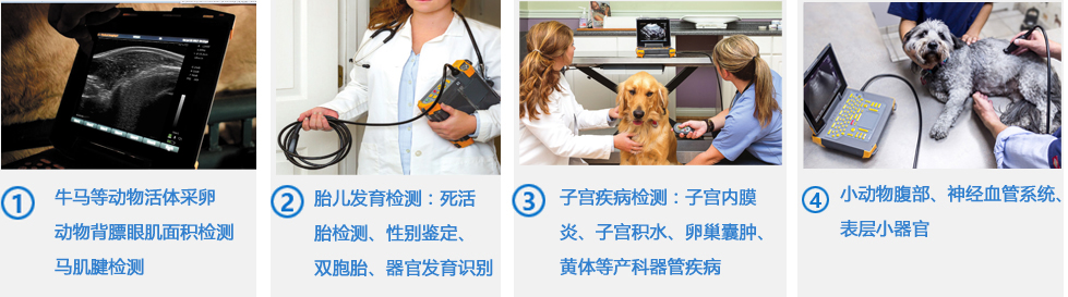 本产品可用于动物背膘、眼肌面积测定,OPU活体采卵的应用、 小动物检查、动物园动物检查、海洋馆动物检查、马肌腱检查以及各种动物的常规检查的应用。 |