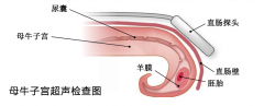 牛用B超机探头检测母牛时依次显示膀胱,然后是子宫颈和子宫体,然后是子宫角,保持探头水平,位于骨盆管的正中平面。……