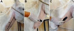 使用驴用B超机测驴的颈静脉时使驴子站立进行,无需镇静,对驴的颈部检测位置进行剃毛处理、清洗并用 70% 酒精消毒两侧颈部整个长度内的颈沟区域。……