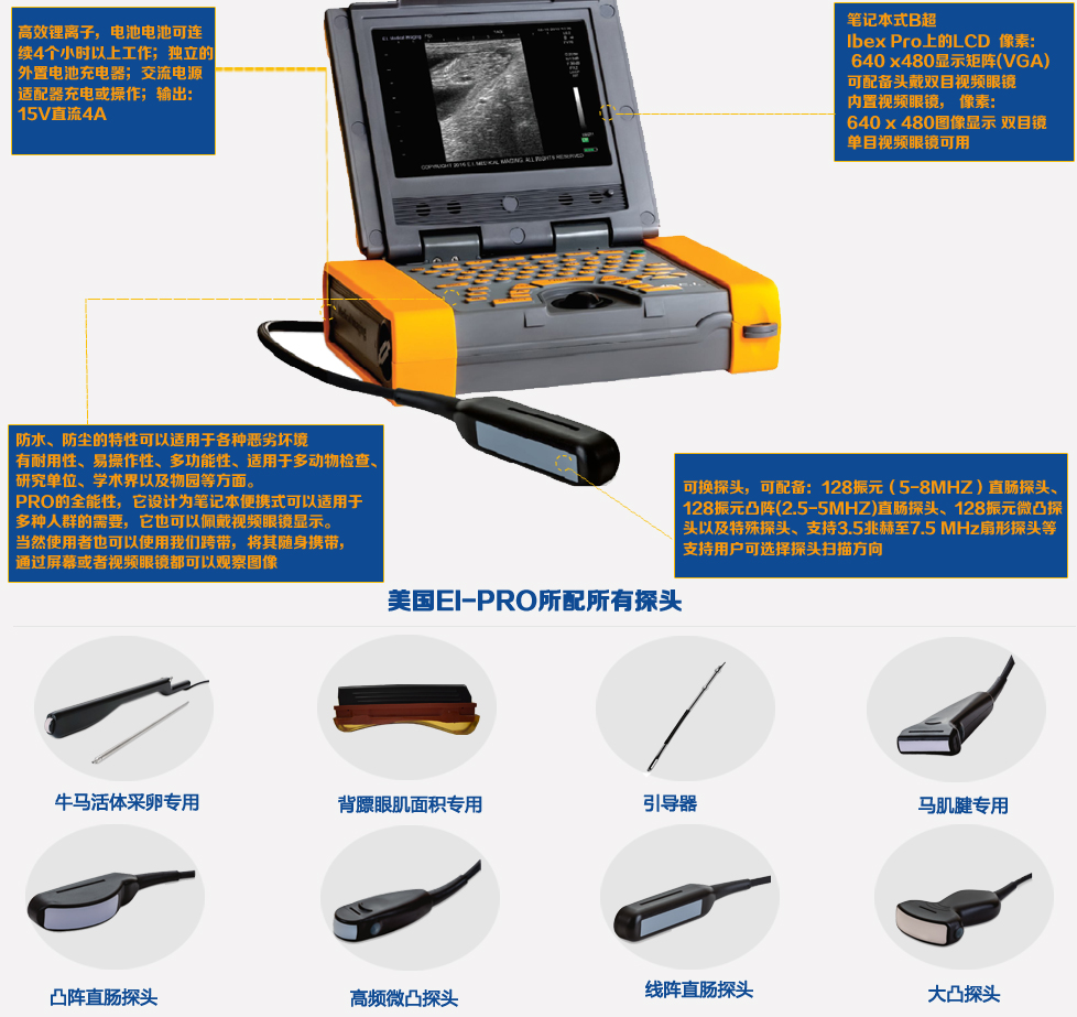 产品名称:进口猪用B超机 鱼用B超 EI Ibex PRO
