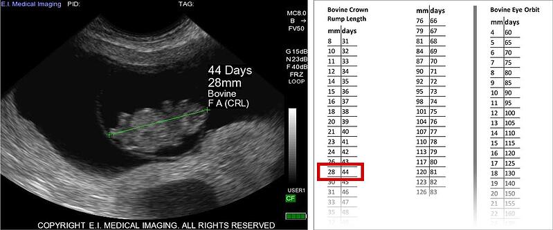 妊娠表— IBEX系统在其软件中内置了30多个妊娠表,可用于各种物种。将妊娠表应用于测量结果可用于对患者进行分期妊娠。这些数据表的参考资料可以在用户手册的后索引中找到。请注意,这些测量的准确性取决于每个表中数据点的数量,以及操作员准确冻结和测量结构的能力。
