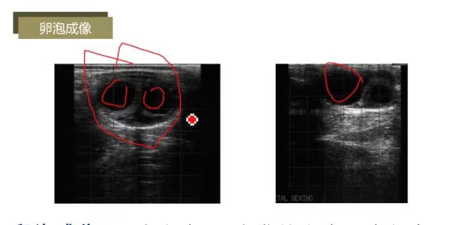 卵泡成像:2个卵泡;1个发情卵泡,直径在2cm左右。