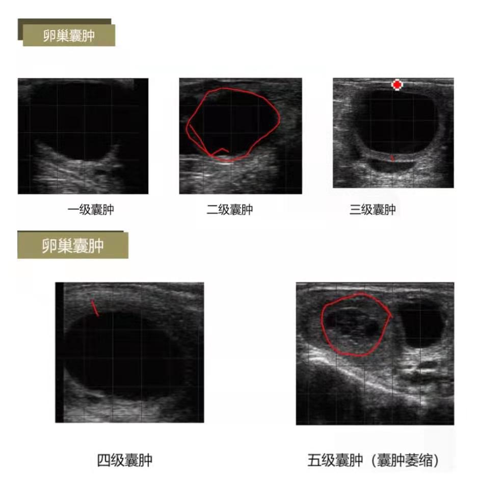 卵巢囊肿:现在牧场卵巢囊肿比例比较多,很多牧场超过了10%,如果1个卵巢上卵泡直径超过3.5-4cm,卵巢上有2个以上的2.5厘米以上的大卵泡即为卵巢囊肿。根据卵泡壁薄厚来决定,分为5个级别:一级囊肿为卵泡囊肿,放置24天阴道栓,有频繁发情的状况;二级囊肿卵泡壁在2毫米左右,是卵泡囊肿的黄体化,7天阴道栓结合2针PG,一周过后进入同期程序;三级囊肿卵泡壁超过2毫米,大约4毫米,一侧不会影响对侧卵巢功能;四级囊肿卵泡壁在5毫米左右,对侧正常不处理;五级囊肿为黄体囊肿萎缩,不用处理,直接进入程序。