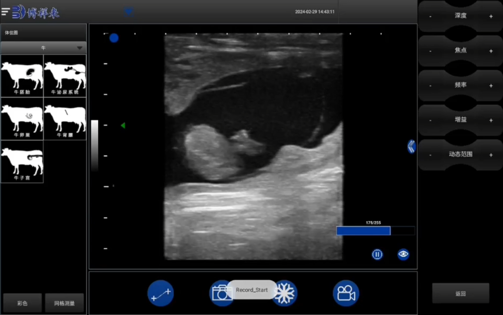支持距离、周长、面积、圆面积等基础测量 ≥30种动物产科测量种类 |